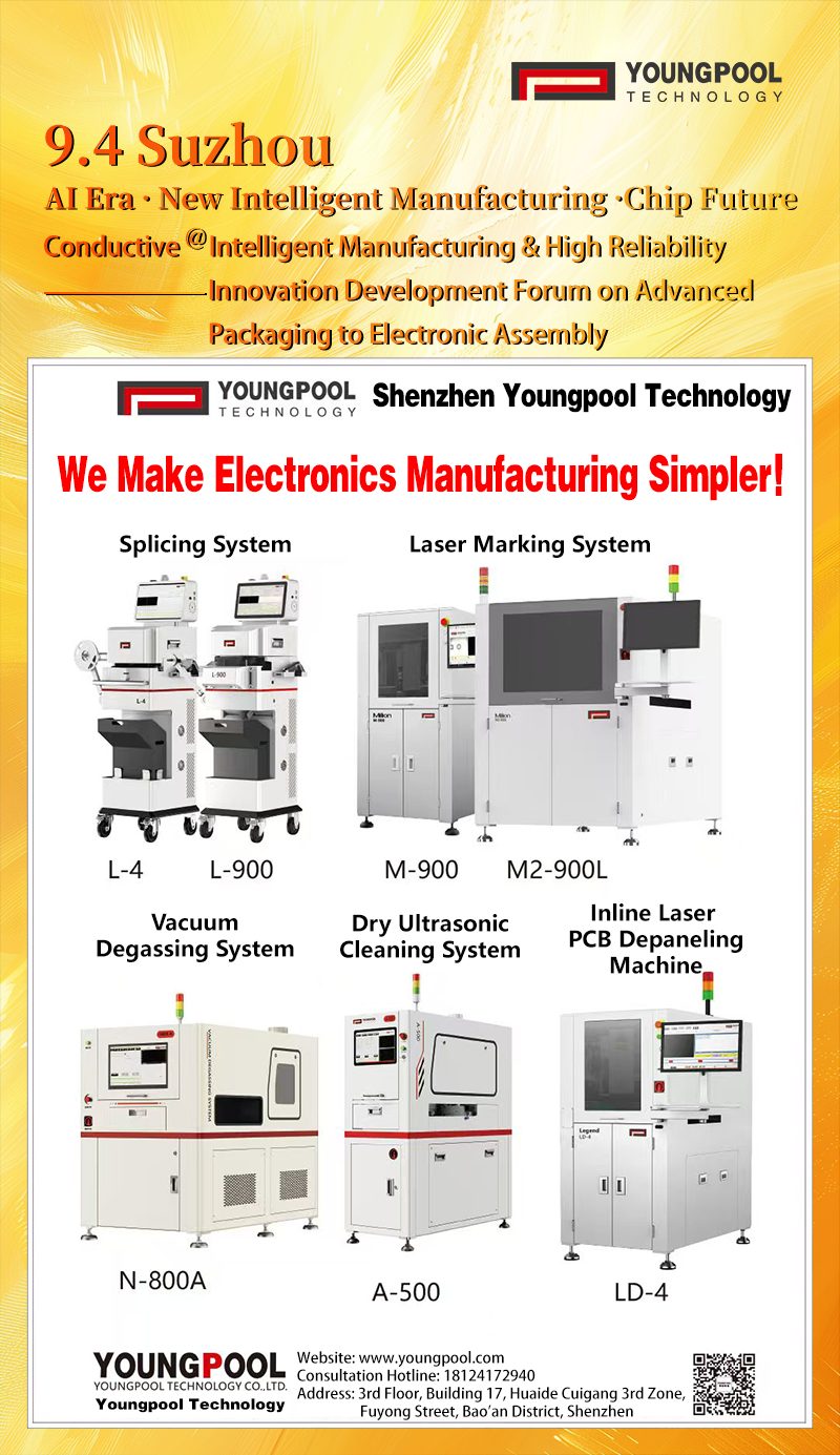 During the forum, Youngpool Technology presented a comprehensive range of solutions covering key SMT production processes, including the Auto Splicing Machine, Auto Splitting Machine, Laser Marking Machine, Inline Laser PCB Depaneling Machine, Vacuum Degassing Machine, and Dry Ultrasonic Cleaning Machine. These demonstrations attracted substantial attention and sparked active exchanges. Meanwhile, we also listened closely to real user needs and pain points related to efficiency, accuracy, and flexible production. Every on-site interaction and technical inquiry provided valuable insights for product iteration and service optimization, further strengthening our commitment to the mission of “making electronics manufacturing easier.”